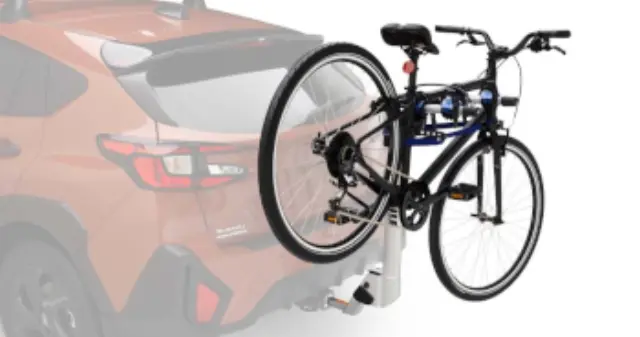 The carrier is unique to Subaru and designed to properly attach to the Subaru Genuine Trailer Hitch. This lightweight aluminum rack is nearly half the weight of most hitch racks- for easy handling- installation and removal. The anti-sway cages prevent bike-to-bike and bike-to vehicle contact and help absorb road shock for frame protection. The stinger is unique to Subaru and designed to properly attach to the Genuine Subaru Trailer Hitch. Arms fold down when not in use- and rack pivots backwards for rear of vehicle access. Integrated locking cable and locking hitch pin lock the bike to the carrier and carrier to the vehicle.